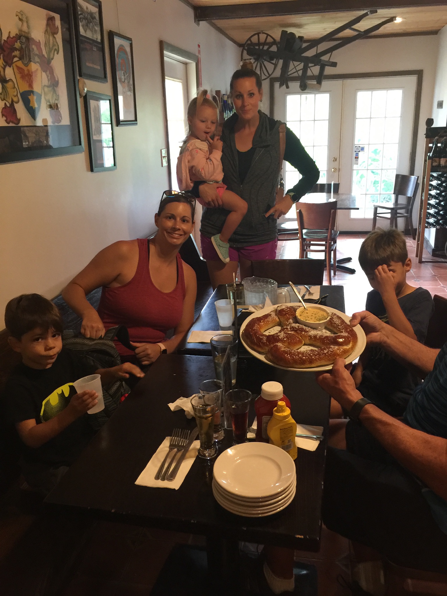 Eating the biggest pretzel ever.