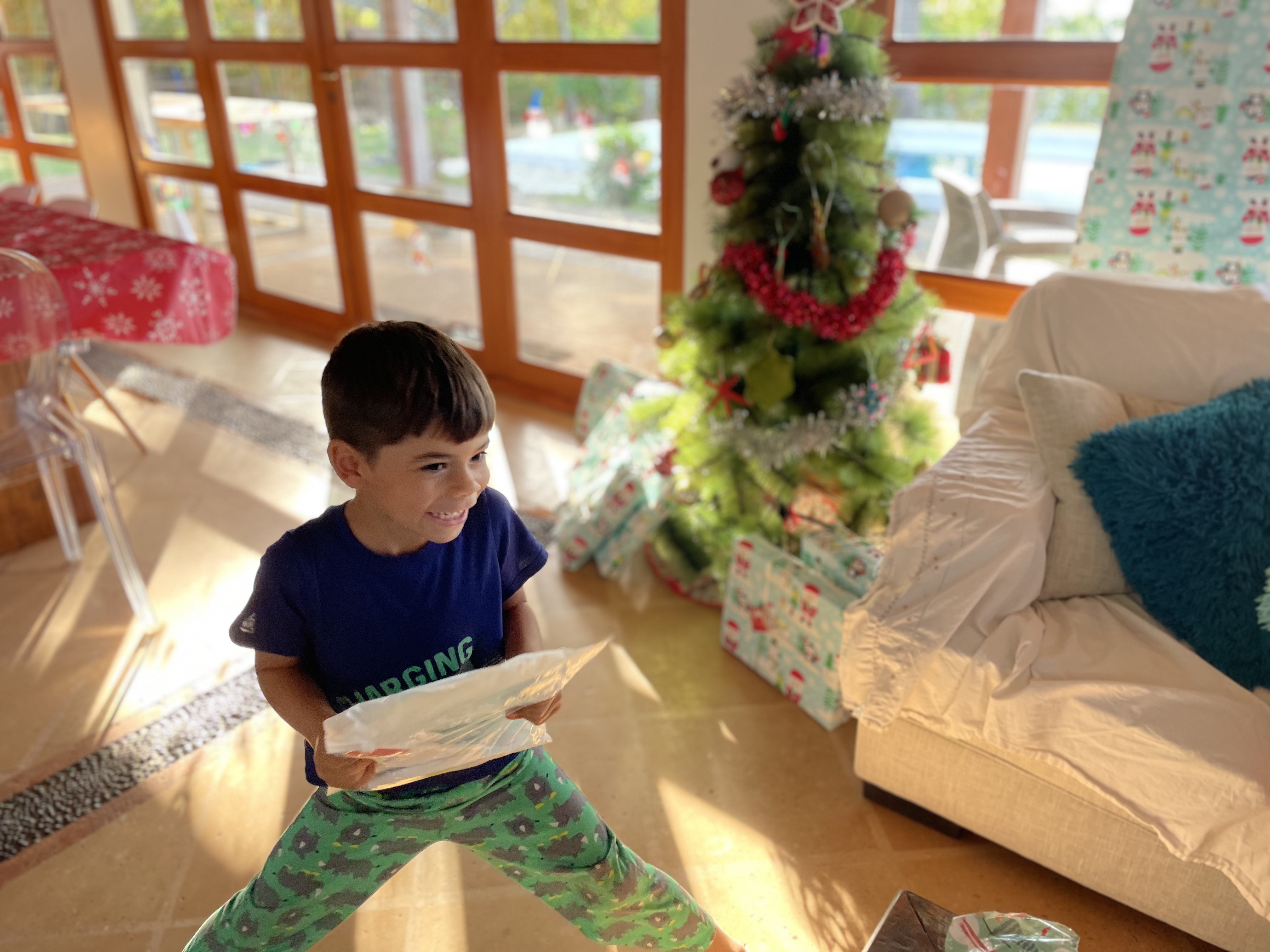 On Christmas morning, the boys awoke to find that Santa had found them in Panama, ate their cookies, wrote them a letter and left them their three gifts under the tree. There were some winner and some loser gifts (Santa and I have a hard time balancing what they ask for and what we know they will really play with in the the long term). AJC got a new surfboard since he started regularly taking lessons this year. He also got a new remote control robot that became the gift all the grown ups regretted. Parker’s favorite was his new Jurassic Park Indominus Rex which is huge, but he loves it. He also got a fort builder kit and his own knife set so he can help in the kitchen. Overall, the boys were very happy.