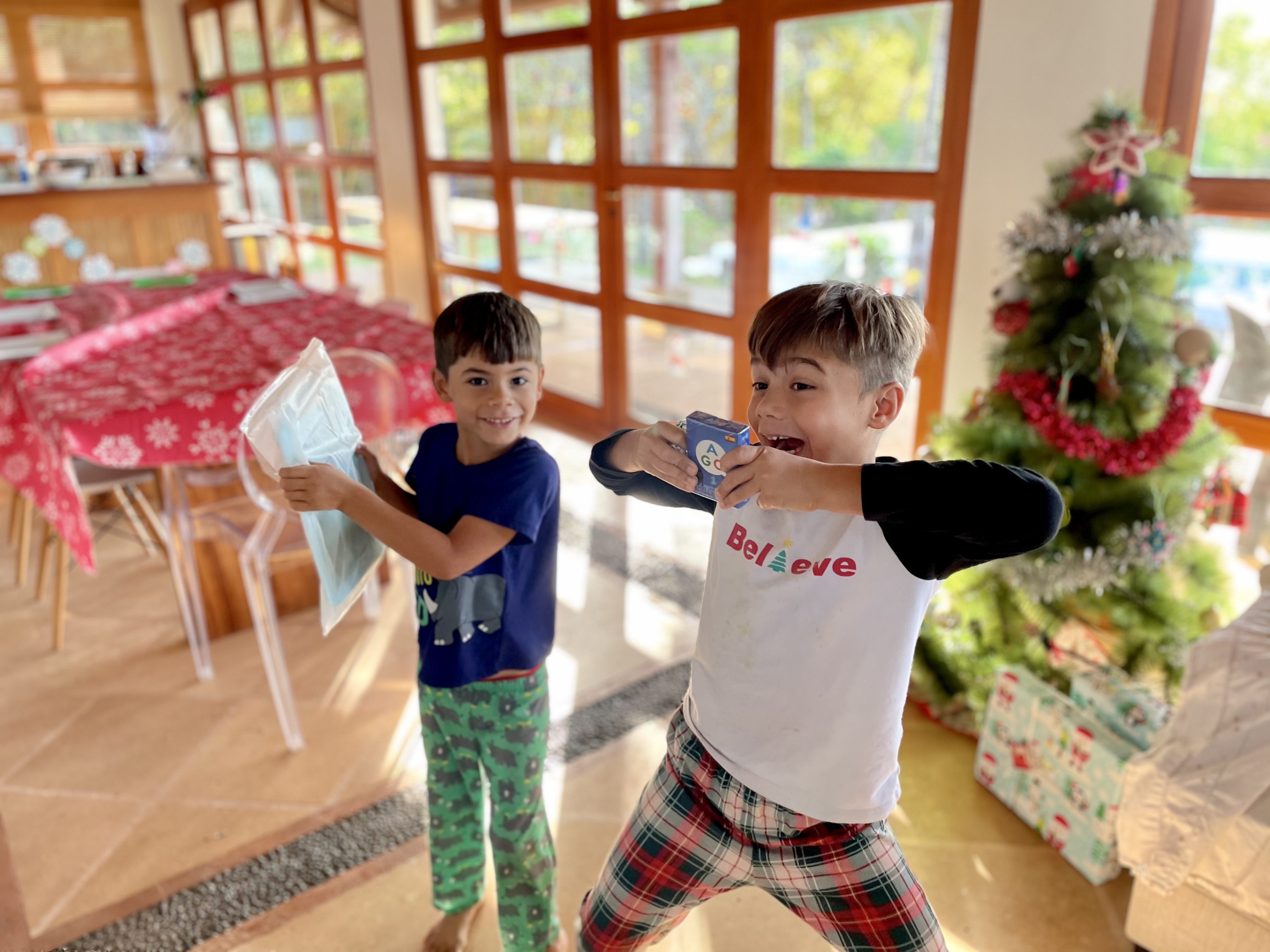 A new tradition this year, was that the boys took a turn being elves. We partnered with a local non-profit called Waved to deliver gifts to some of the local children. The boys took their role extremely seriously-not to just give gifts but also to spread the Christmas spirit. They dressed in their most Christmassy pajamas and shouted “Feliz Navidad” to every family as we drove away.