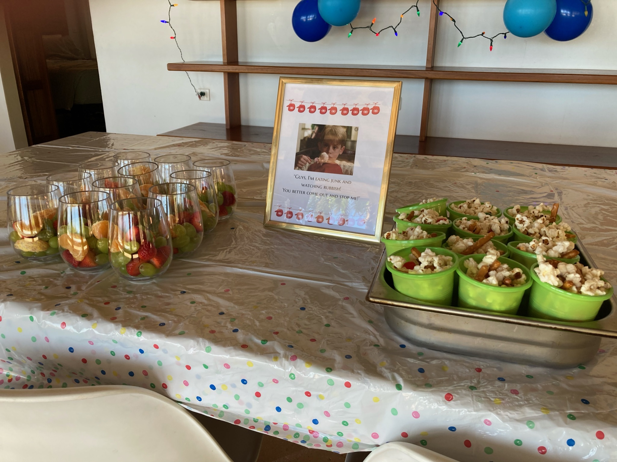 Afterward, the kids enjoyed homemade cheese pizza and the movie. I have to say, this might have been our most epic party yet. Despite our completely trashed house, the most important thing is that AJC got to realize his vision and embody Kevin McAllister for the day.