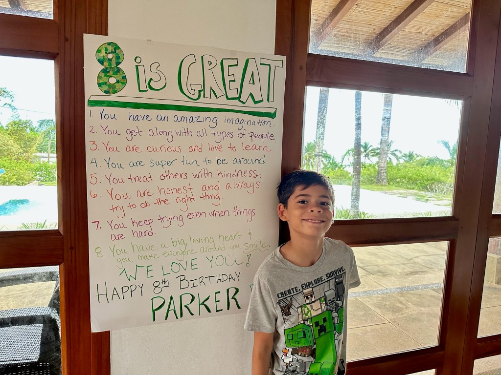 His one lament is that he couldn’t go to an amusement park for his birthday. This boy would ride roller coasters every day if we let him. Instead he had to settle for a new basketball hoop and a trip to Chile.